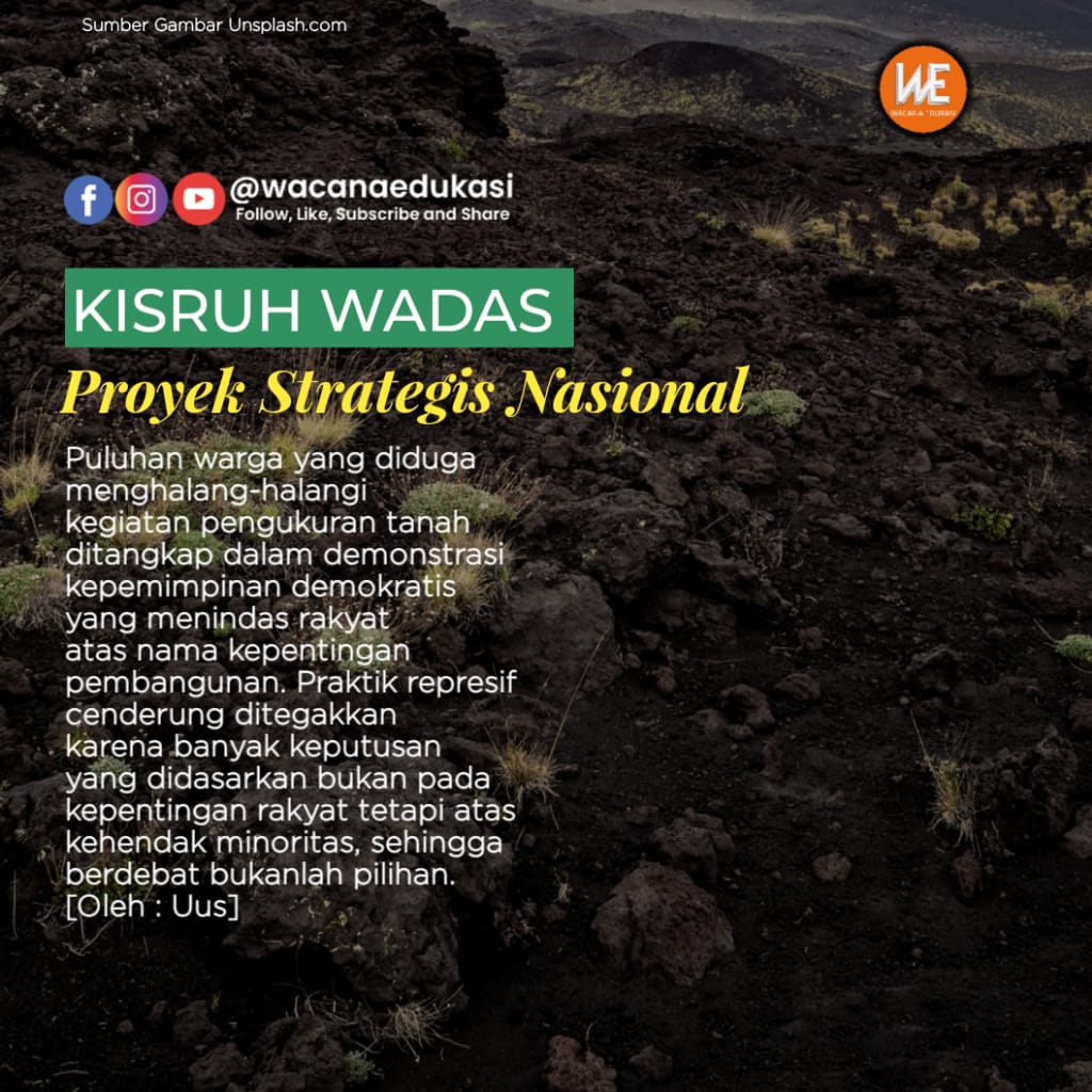 http://Wacana-edukasi.com — Publik dikejutkan dengan penangkapan puluhan warga Desa Wadas, Kabupaten Purworejo, Jawa Tengah, setelah penambangan andesit untuk proyek Bendungan Bener ditolak. Bentrokan antara warga Wadas dan polisi terekam di media sosial. Video ratusan polisi bersenjata lengkap tiba di Desa Wadas.