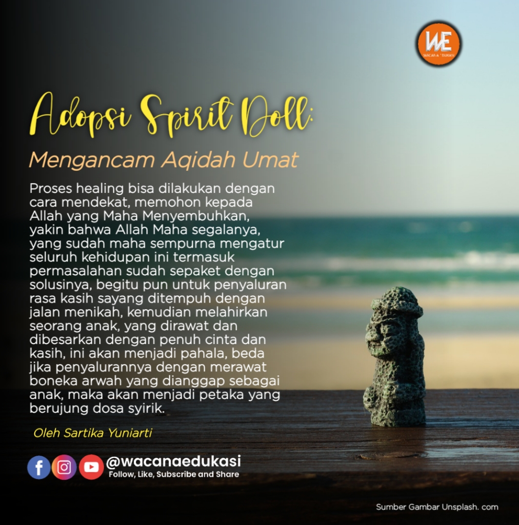 Maka adanya fenomena adopsi spirit doll ini sudah jelas merupakan suatu keharaman, karena mempercayai ada kekuatan lain selain Allah SWT. Jika hal ini dibiarkan dapat mengancam aqidah umat. Wallahu a’lam bishawab.