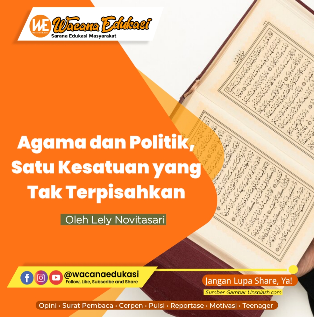Dalam Islam, politik tidak bisa terpisah dari agama. Ibarat 2 sisi koin, agama harus menjadi landasan dalam menentukan arah berpolitik negara.
