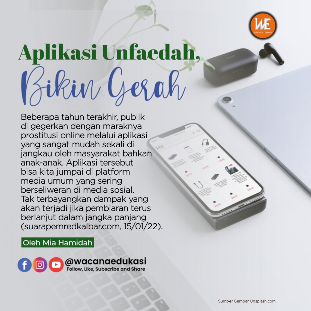 wacana-edukasi.com— Sudah beberapa tahun terakhir, publik di gegerkan dengan maraknya prostitusi online melalui aplikasi yang sangat mudah sekali di jangkau oleh masyarakat bahkan anak-anak. Aplikasi tersebut bisa kita jumpai di platform media umum yang sering berseliweran di media sosial. Tak terbayangkan dampak yang akan terjadi jika pembiaran terus berlanjut dalam jangka panjang (suarapemredkalbar.com, 15/01/22).