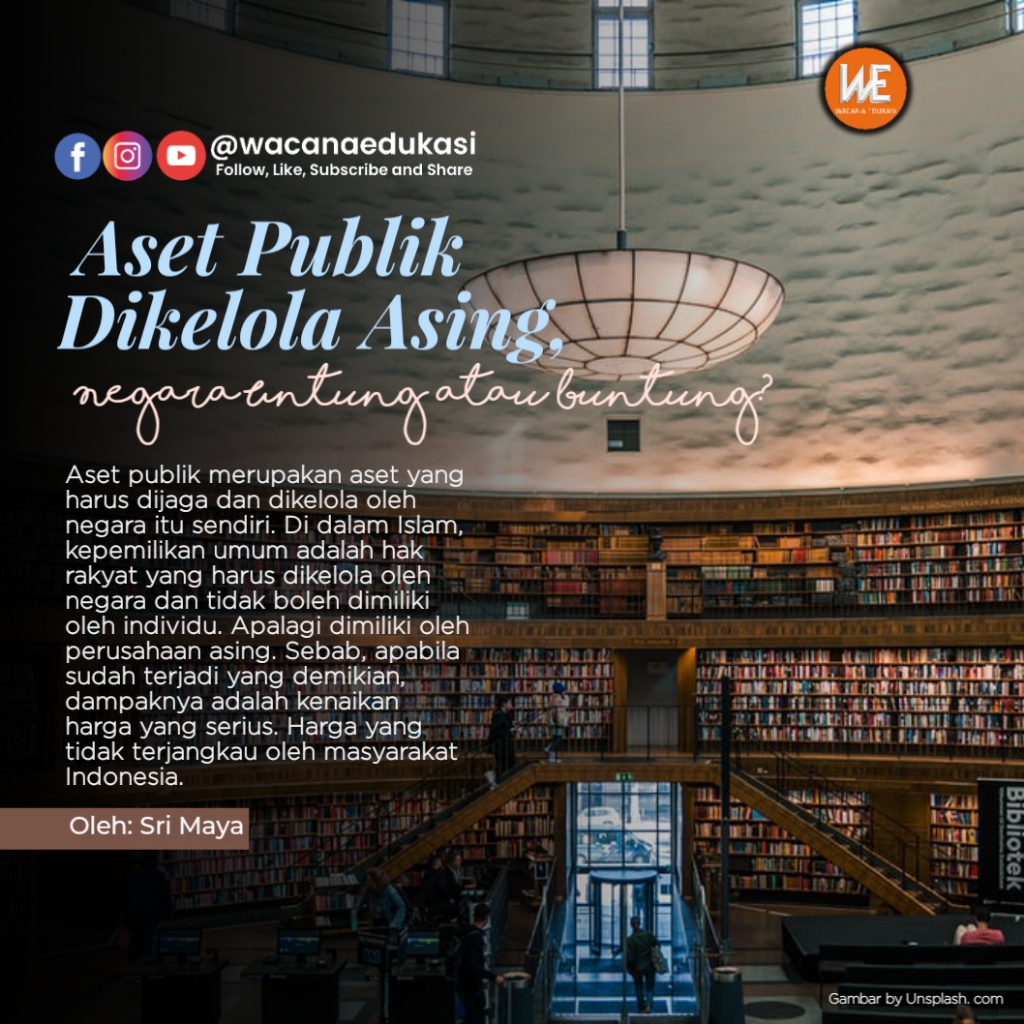 Aset publik merupakan aset yang harus dijaga dan dikelola oleh negara itu sendiri. Di dalam Islam, kepemilikan umum adalah hak rakyat yang harus dikelola oleh negara dan tidak boleh dimiliki oleh individu . Apalagi dimiliki oleh perusahaan asing. Sebab, apabila sudah terjadi yang demikian, dampaknya adalah kenaikan harga yang serius. Harga yang tidak terjangkau oleh masyarakat Indonesia.