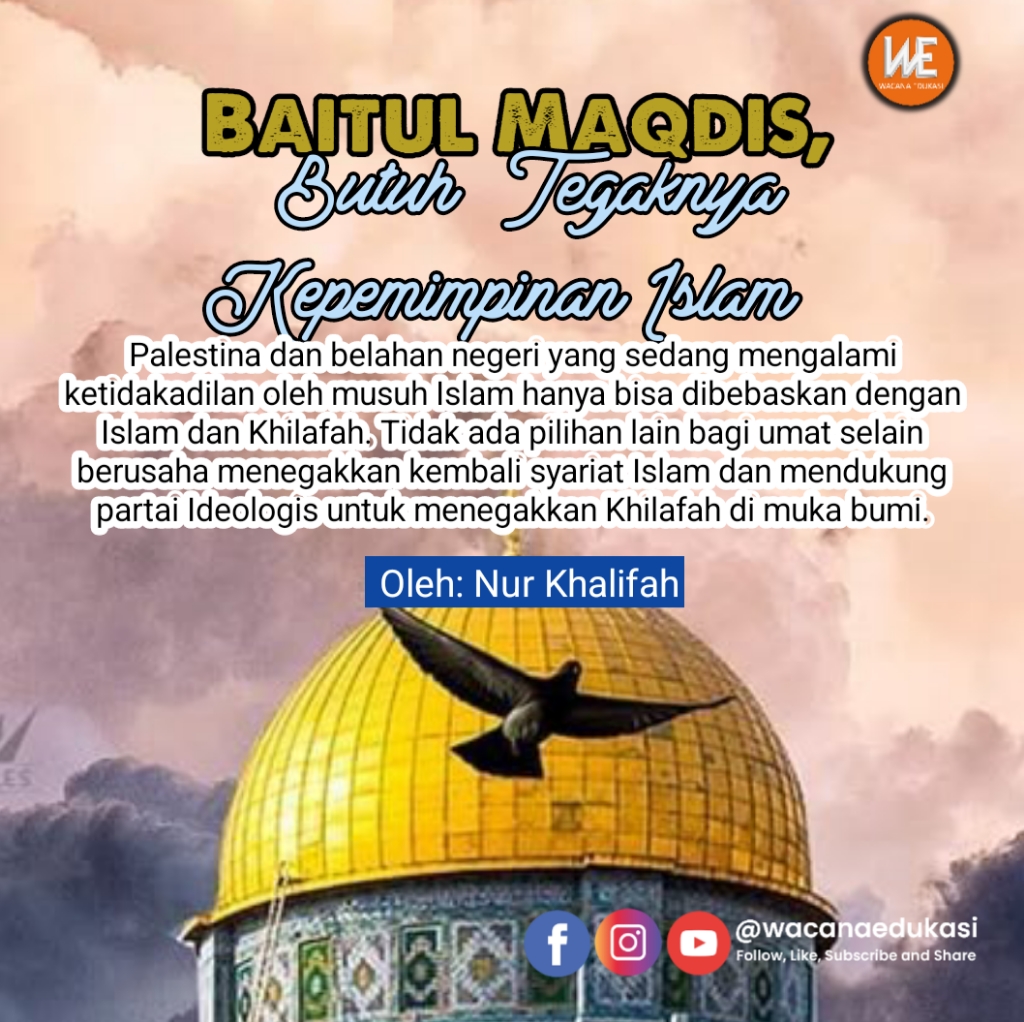 Palestina dan belahan negeri yang sedang mengalami ketidakadilan oleh musuh Islam hanya bisa dibebaskan dengan Islam dan Khilafah. Tidak ada pilihan lain bagi umat selain berusaha menegakkan kembali syariat Islam dan mendukung partai Ideologis untuk menegakkan Khilafah di muka bumi. [WE/IK].