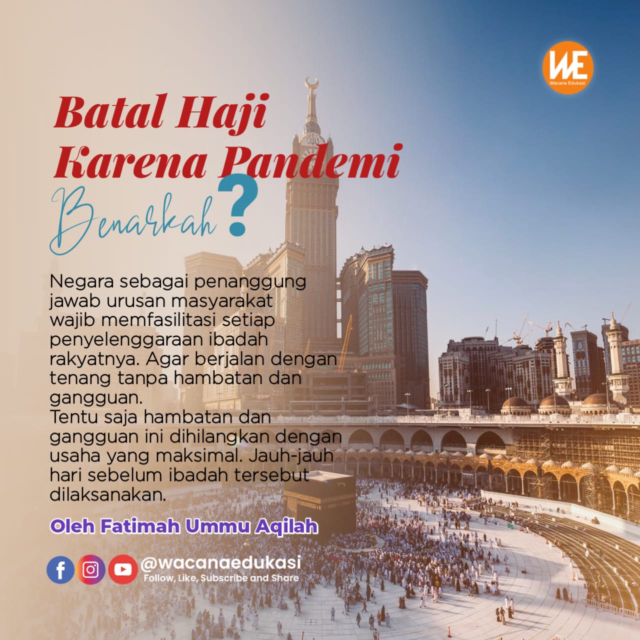 Ibadah haji adalah panggilan kepada setiap muslim yang Allah kehendaki untuk bertamu ke rumah Allah. Jika tahun ini tidak ada keberangkatan haji, adalah sebuah musibah bagi kaum muslimin. Sebab Allah tidak berkenan memanggil hamba-Nya dikarenakan begitu jauhnya negeri ini dari syariat yang telah Allah tetapkan.
