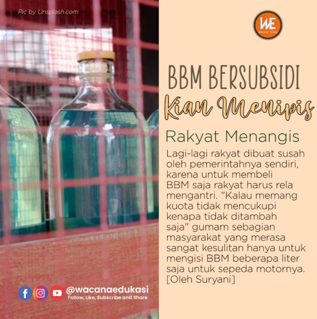 Itulah hakikatnya penguasa dalam sistem kapitalisme, negara sama sekali tidak berpihak kepada rakyat. Buktinya hanya untuk membeli BBM sebagai kebutuhan dasar pun sangat sulit diperoleh dengan harga yang murah, kalau pun ada kuotanya pun sangat terbatas juga regulasi yang ribet. Tentu akan menambah beban masyarakat kecil.