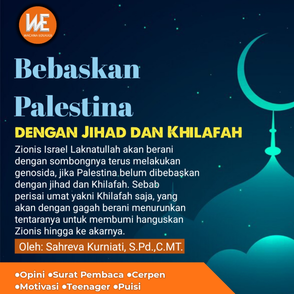 Karenanya, wajib memahami persoalan Palestina sebagai persoalan seluruh kaum muslim. Agar seluruh kaum muslim tergerak untuk melakukan pembebasan, dengan jalan Jihad dibawah komando Khilafah ‘alla minhaj nubuwwah. Kesadaran ini penting, agar setiap muslim tergerak untuk melakukan kontribusi sekecil apa pun itu.
