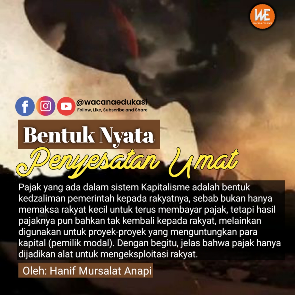 Maka jelas, pajak yang ada dalam sistem Kapitalisme adalah bentuk kedzaliman pemerintah kepada rakyatnya, sebab bukan hanya memaksa rakyat kecil untuk terus membayar pajak, tetapi hasil pajaknya pun bahkan tak kembali kepada rakyat, melainkan digunakan untuk proyek-proyek yang menguntungkan para kapitalis. Dengan begitu, jelas bahwasannya pajak hanya dijadikan alat untuk mengeksploitasi rakyat.