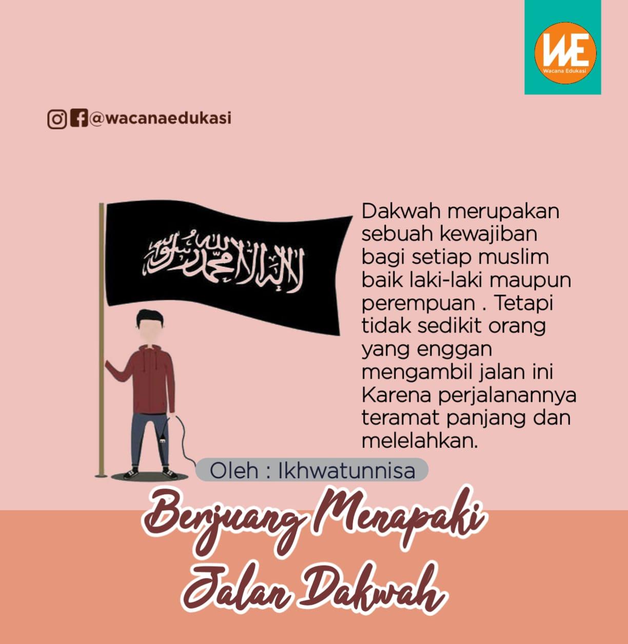 Dakwah merupakan sebuah kewajiban bagi setiap muslim baik laki-laki maupun perempuan . Namun, tidak sedikit orang yang enggan mengambil jalan ini karena perjalanannya teramat panjang dan melelahkan. Perlu mempersiapkan segala hal bukan hanya fisik dan mental tetapi juga kesabaran.