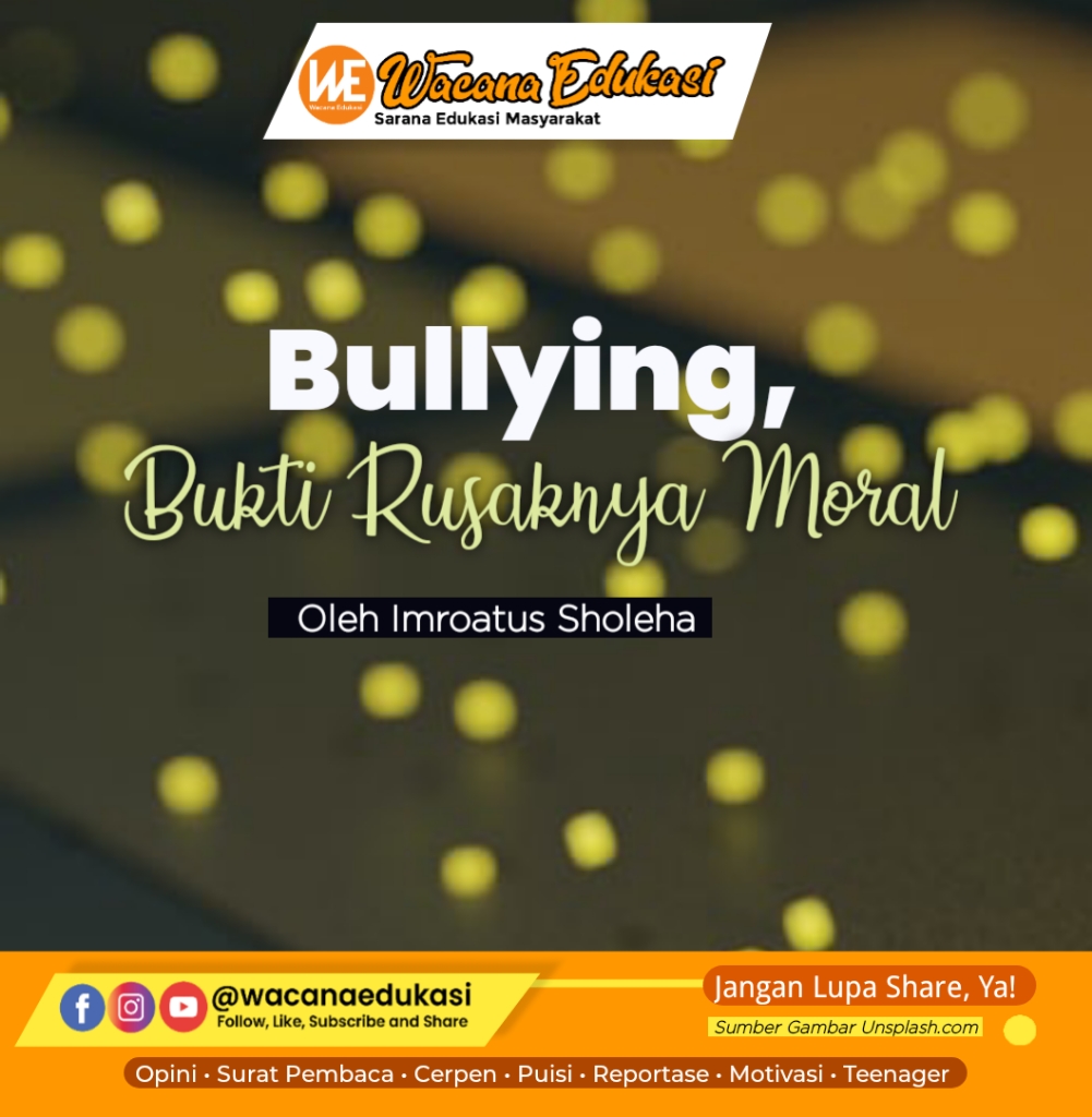 wacana-edukasi.com, OPINI-– Saat ini angka Bullying (perundungan) kian mengkhawatirkan di tengah-tengah generasi muda. Jika dulu aksi bullying dilakukan secara sembunyi-sembunyi atau di tempat-tempat sepi, namun saat ini pelaku bullying dengan bangga melakukan aksinya di tempat terbuka dan disiarkan langsung di media sosial serta menjadi tontonan banyak orang.