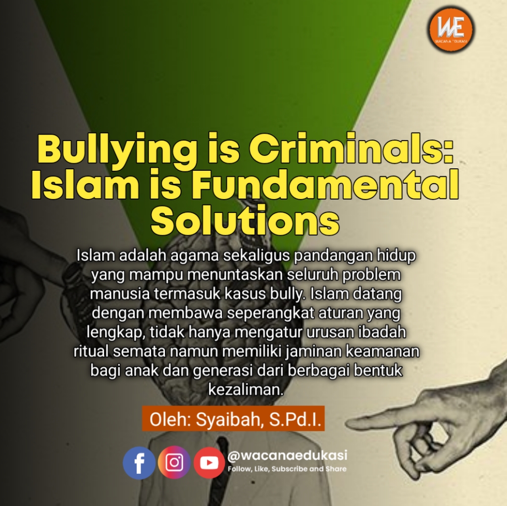 Islam adalah agama sekaligus pandangan hidup yang mampu menuntaskan seluruh problem manusia termasuk kasus bully. Islam datang dengan membawa seperangkat aturan yang lengkap, tidak hanya mengatur urusan ibadah ritual semata namun memiliki jaminan keamanan bagi anak dan generasi dari berbagai bentuk kedzoliman.