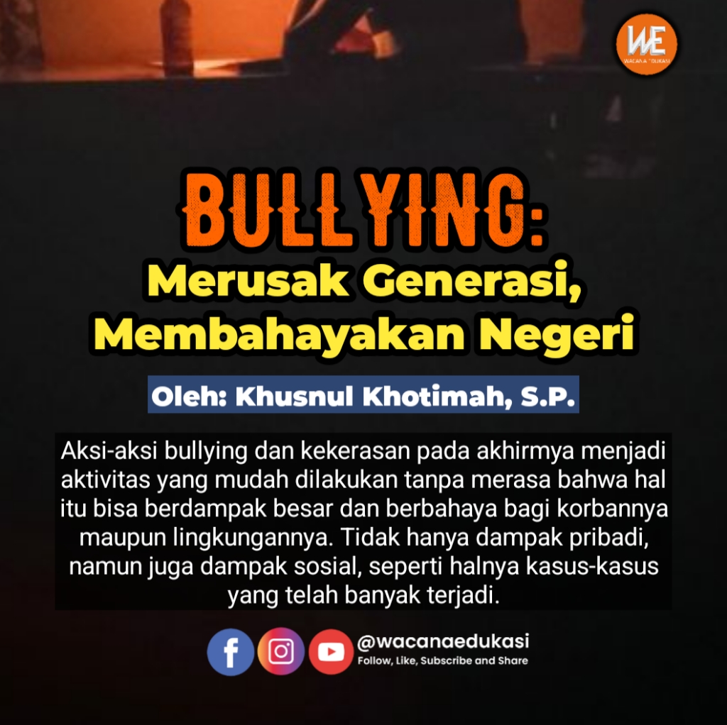 Kasus-kasus bullying seolah tiada henti menghiasi laman berita setiap hari. Semakin hari semakin beragam jenisnya dan berdampak mengerikan serta membahayakan bagi keselamatan jiwa dirinya maupun orang lain. Maraknya bunuh diri, perusakan dan pembakaran yang dipicu bullying menjadi masalah yang perlu diperhatikan secara serius.