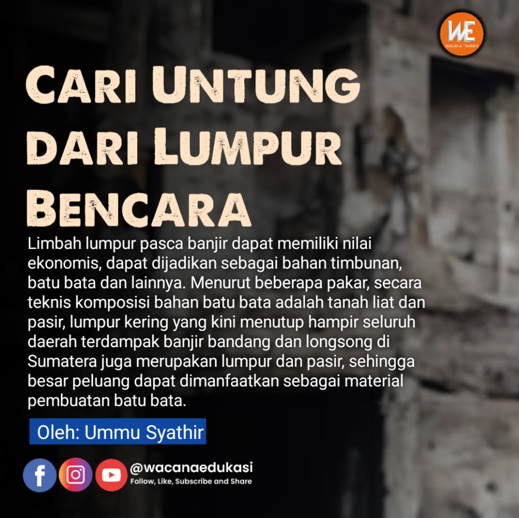 Limbah lumpur pasca banjir dapat memiliki nilai ekonomis, dapat dijadikan sebagai bahan timbunan, batu bata dan lainnya. Menurut beberapa pakar, secara teknis komposisi bahan batu bata adalah tanah liat dan pasir, lumpur kering yang kini menutup hampir seluruh daerah terdampak banjir bandang dan longsong di Sumatera juga merupakan lumpur dan pasir, sehingga besar peluang dapat dimanfaatkan sebagai material pembuatan batu bata. Padahal sudah seharusnya pemerintah melakukan perbaikan infrastruktur pasca bencana banjir, mengeruk sisa lumpur di rumah warga yang masih bisa diselamatkan tanpa memandang bahwa disana ada manfaat yang bisa mendatangkan cuan, sehingga berharap pada swasta untuk memanfaatkan sisa lumpur tersbut, seolah lupa bahwa yang menyebabkan parahnya bencana tersebut dikarenakan ketamakan swasta/kapitalis dalam mengeuk kekayaan alam Sumatera.