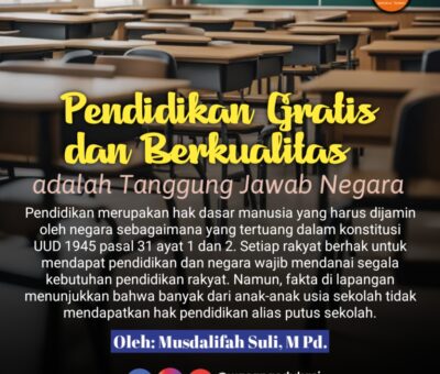 Oleh: Misdalifah Suli, M.Pd. (Aktivis Muslimah)Wacana-edukasi.com, SURAT PEMBACA--Pendidikan merupakan hak dasar manusia yang harus dijamin oleh n