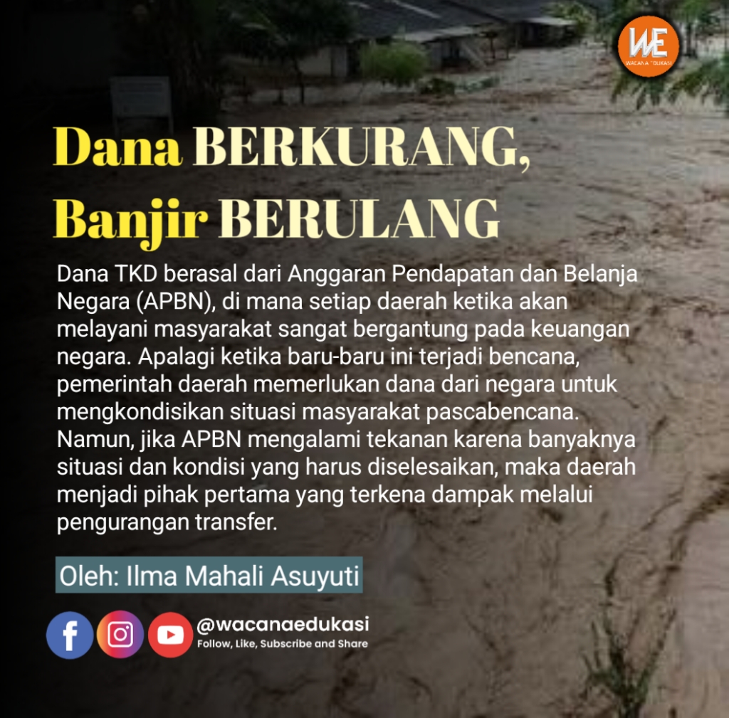 Wacana-edukasi.com, OPINI–Islam mengajarkan bahwa pemimpin harus menjaga keselamatan rakyat, dan mencegah kemudaratan lebih diutamakan daripada mengejar keuntungan semata. Ironisnya, pemangkasan dana Transfer ke Daerah yang berujung pada lemahnya penanganan banjir di Kabupaten Bandung menunjukkan bahwa kebijakan negara belum sepenuhnya berpihak pada perlindungan rakyat.