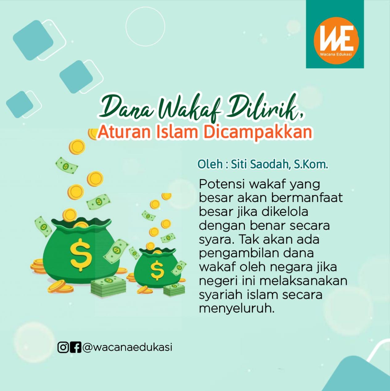 Potensi wakaf yang besar akan bermanfaat besar jika dikelola dengan benar secara syara. Tak akan ada pengambilan dana wakaf oleh negara jika negeri ini melaksanakan syariah islam secara menyeluruh. Penerapan syariah Islam secara menyeluruh akan memberikan kemaslahatan umat dan khalifah yang akan mengatur urusan rakyat secara paripurna.