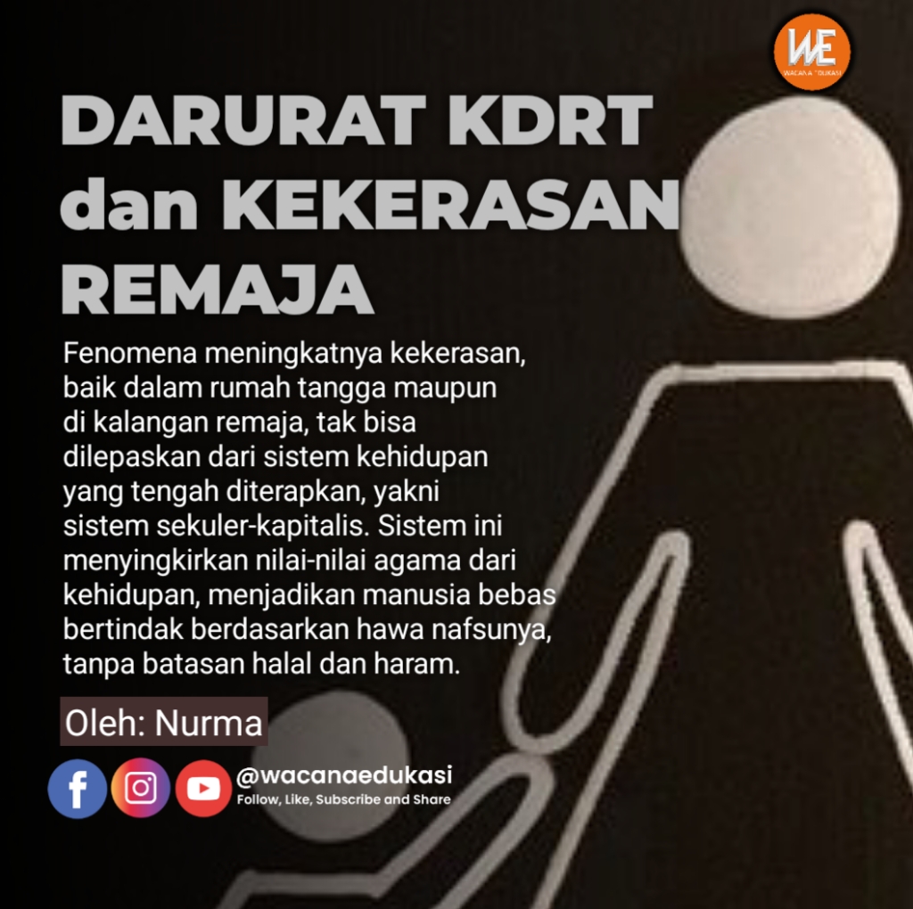 Fenomena meningkatnya kekerasan, baik dalam rumah tangga maupun di kalangan remaja, tak bisa dilepaskan dari sistem kehidupan yang tengah diterapkan, yakni sistem sekuler-kapitalis. Sistem ini menyingkirkan nilai-nilai agama dari kehidupan, menjadikan manusia bebas bertindak berdasarkan hawa nafsunya, tanpa batasan halal dan haram.