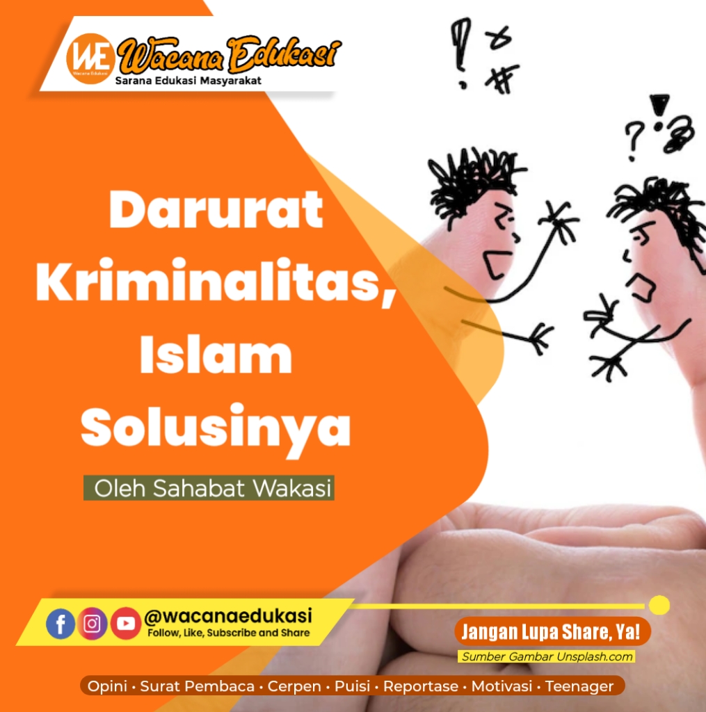 wacana-edukasi.com, SURAT PEMBACA– Tindakan kriminalitas bukanlah hal yang asing di telinga kita, hampir setiap hari kita mendengar kasus-kasus seperti pembegalan, perampokan, hingga pembunuhan. Seperti yang dilakukan Iin Wensi (43 tahun), warga Desa Sumaja, Kabupaten Muara Enim. Ia ditangkap polisi karena menusuk tetangganya hingga tewas. Dikutip Kumparan.com, Senin (10/07/2023)