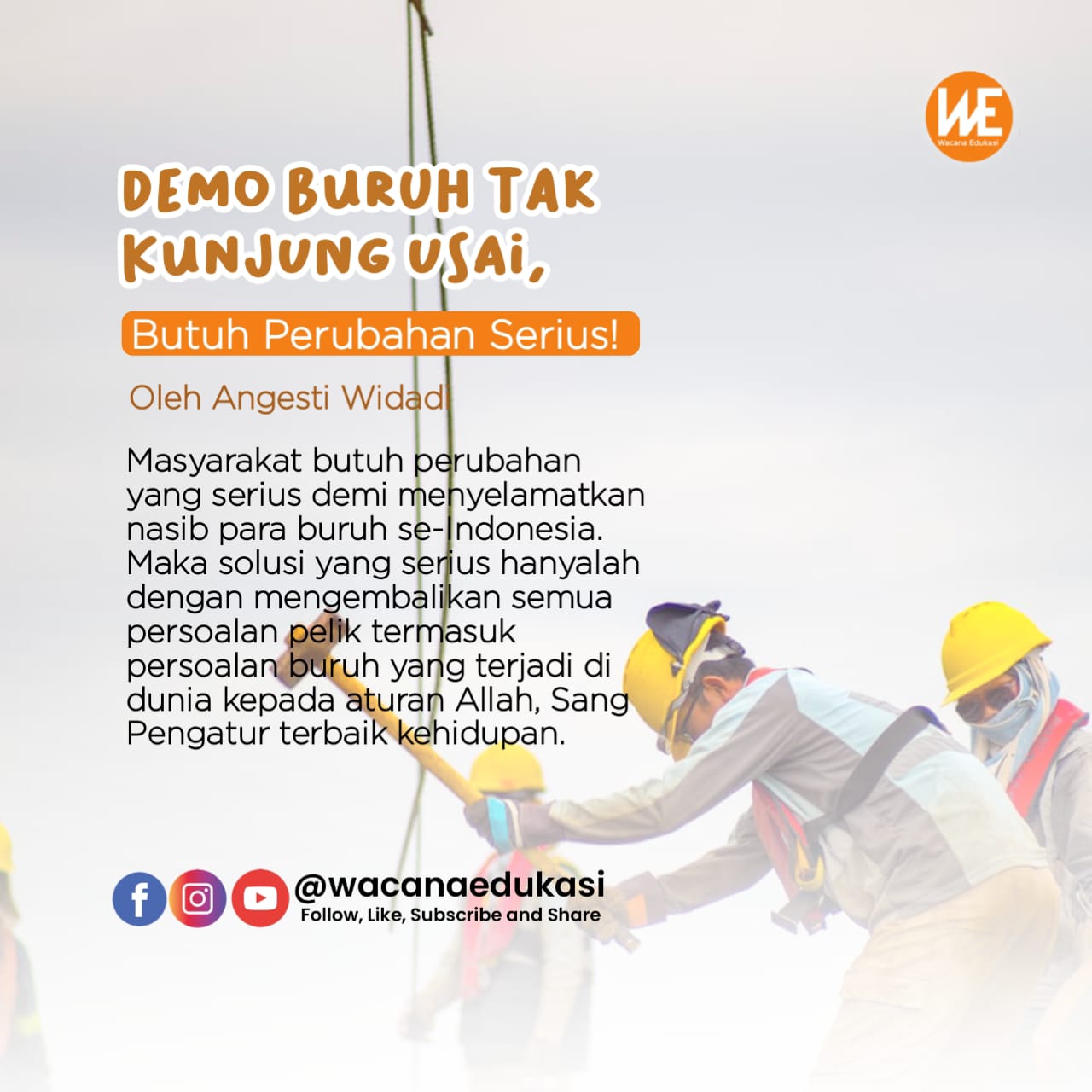 Masyarakat butuh perubahan yang serius demi menyelamatkan nasib para buruh se-Indonesia. Maka solusi yang serius hanyalah dengan mengembalikan semua persoalan pelik termasuk persoalan buruh yang terjadi di dunia kepada aturan Allah, Sang Pengatur terbaik kehidupan. Persoalan buruh merupakan satu dari efek domino akibat diterapkannya sistem kapitalisme. Solusi yang tuntas demi perubahan yang serius dengan menerapkan seluruh aturan dari Allah.
