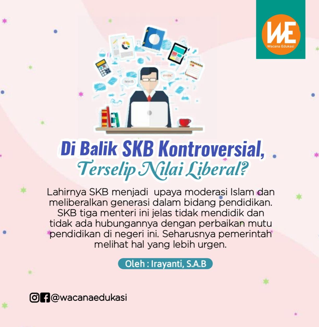 Lahirnya SKB menjadi upaya moderasi Islam dan meliberalkan generasi dalam bidang pendidikan. SKB tiga menteri ini jelas tidak mendidik dan tidak ada hubungannya dengan perbaikan mutu pendidikan di negeri ini. Seharusnya pemerintah melihat hal yang lebih urgen.