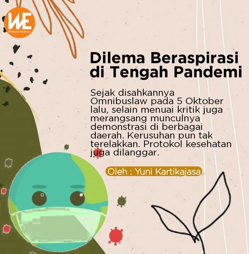 Demonstrasi sebagai karakter negeri demokrasi adalah ciri yang paling menonjol. Menyampaikan pendapat secara berkelompok tidaklah dilarang. Namun, di saat kasus covid sedang meninggi, merupakan dilematis dalam beraspirasi.