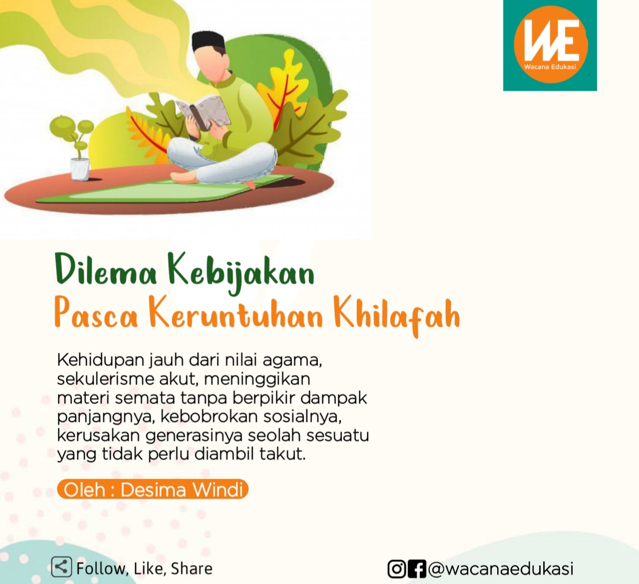 Kehidupan jauh dari nilai agama, sekulerisme akut, meninggikan materi semata tanpa berpikir dampak panjangnya, kebobrokan sosialnya, kerusakan generasinya seolah sesuatu yang tidak perlu diambil takut. Sikap ini justru membuka seluas-luasnya pintu keburukan. Masuknya konsep kapitalisme yang dirancang oleh kaum kafir sejak ratusan tahun sebelum khilafah runtuh berhasil bertahan hingga saat ini, bahkan secara tidak sadar diemban oleh umat islam.