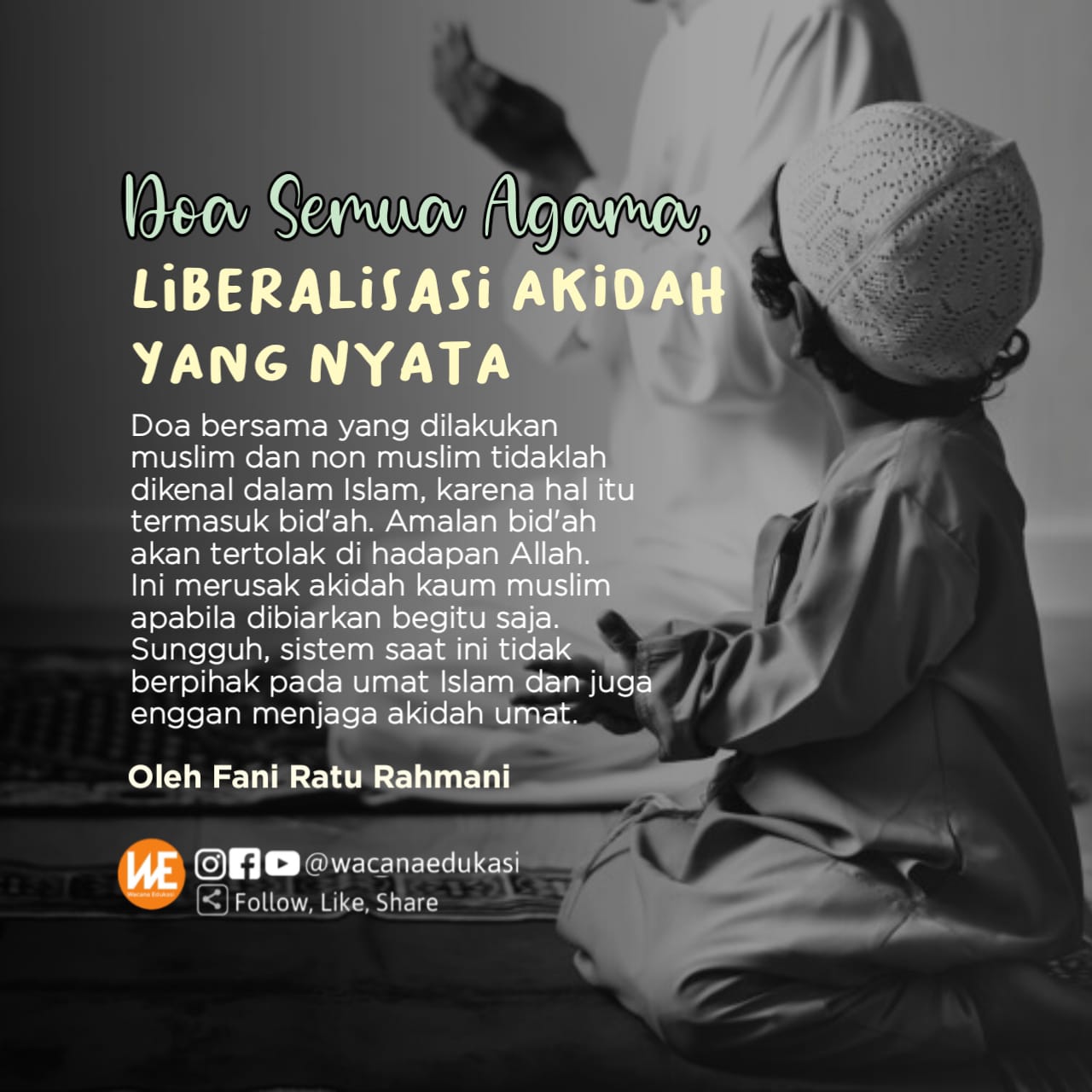 Doa bersama yang dilakukan muslim dan non muslim tidaklah dikenal dalam Islam, karena hal itu termasuk bid’ah. Amalan bid’ah akan tertolak di hadapan Allah. Ini merusak akidah kaum muslim apabila dibiarkan begitu saja. Sungguh, sistem saat ini tidak berpihak pada umat Islam dan juga enggan menjaga akidah umat.