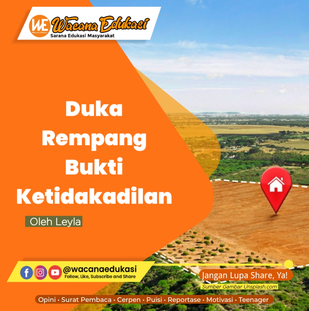 wacana-edukasi.com, SURAT PEMBACA– Rempang, bukanlah satu-satunya korban, tapi Rempang adalah salah satu dari sekian kasus konflik lahan. Investasi senilai Rp 300 triliun dengan dalih untuk menyejahterakan, namun justru disambut warga dengan kecaman.