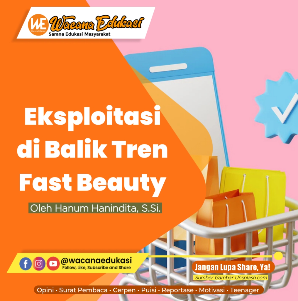 wacana-edukasi.com, OPINI– Konten tentang tutorial memakai atau mereview produk kecantikan untuk merawat kulit dan merias wajah begitu marak di sosial media. Konten ini menampilkan iming-iming wajah-wajah mulus dan glowing yang membuat masyarakat, khususnya perempuan bermimpi bahwa mereka dapat meraih standar kecantikan yang ditetapkan dengan memakai produk yang sama atau cara pakai tertentu. Akibatnya, terjadi peningkatan yang tajam dalam permintaan akan produk kecantikan seperti skincare dan kosmetik dari berbagai merk. Tren produk kecantikan pun akhirnya turut berkembang pesat dan memenuhi pasar industri yang mengakibatkan terjadinya fenomena fast beauty.