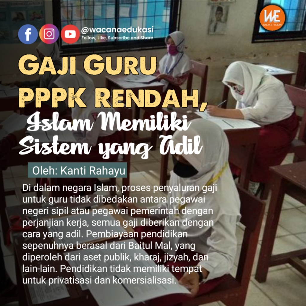 Di samping itu, negara dalam sistem kapitalisme tidak memiliki dana yang cukup untuk memberikan gaji yang layak kepada guru. Sumber daya alam yang dikelola dengan prinsip kapitalisme dikelola oleh pihak swasta atau asing dengan dalih investasi. Pendapatan negara hanya tergantung pada pajak dan utang yang justru memberatkan rakyat. Guru PPPK mengalami diskriminasi dan perlakuan tidak adil dari negara, dipandang hanya sebagai faktor produksi dan bukan sebagai pendidik yang mulia bagi generasi.