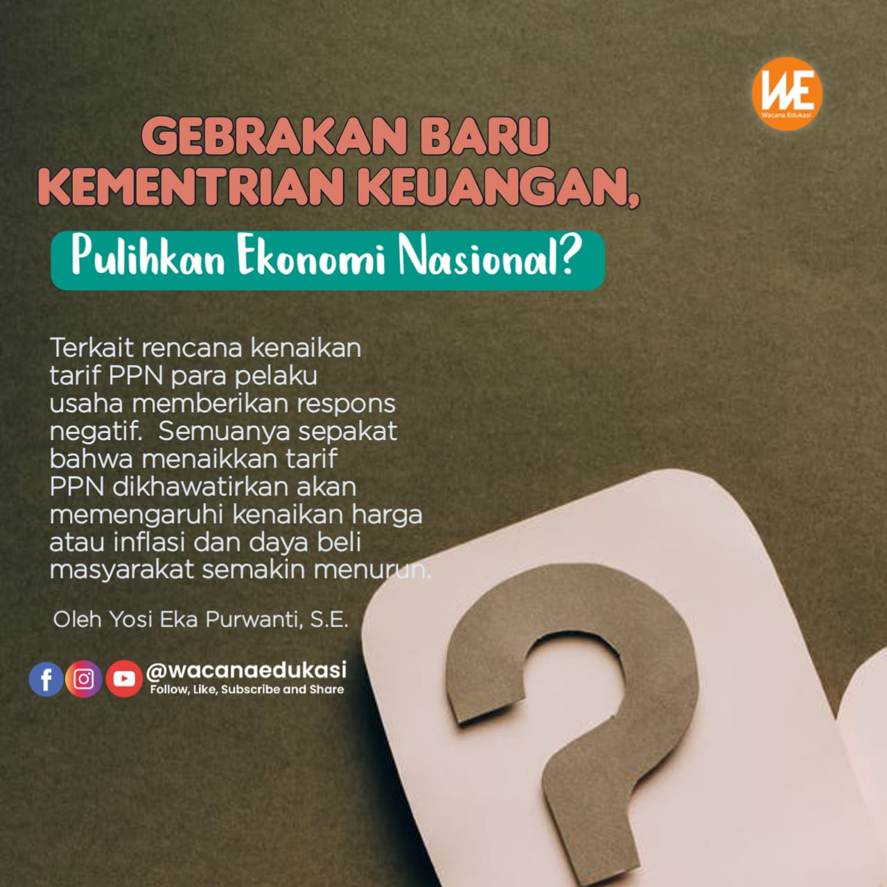 Wacana-edukasi.com —Kementerian Keuangan (Kemenkeu) berencana menaikkan tarif pajak PPN terhadap sektor sembako dan pendidikan dari yang awalnya 10% menjadi 12% melalui revisi Undang-Undang Nomor 6 tahun 1983 tentang Ketentuan Umum dan Tata Cara Perpajakan (KUP). Dalam Pasal 4A RUU KUP diketahui bahwa pemerintah mengganti status barang tidak kena pajak di antaranya adalah barang hasil pertambangan serta barang kebutuhan pokok yang sangat dibutuhkan oleh rakyat. Barang tersebut meliputi beras dan gabah, jagung, sagu, kedelai, garam, daging, telur, susu, buah-buahan, sayur-sayuran, ubi-ubian, bumbu-bumbuan, dan gula.