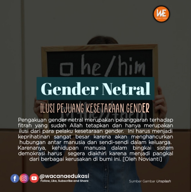 Pengakuan gender netral merupakan pelanggaran terhadap fitrah yang sudah Allah tetapkan dan hanya merupakan ilusi dari para pelaku kesetaraan gender. Ini harus menjadi keprihatinan sangat besar karena akan menghancurkan hubungan antar manusia dan sendi-sendi dalam keluarga. Karenanya, kehidupan manusia dalam bingkai sistem demokrasi harus segera diakhiri karena menjadi pangkal dari berbagai kerusakan di bumi ini.
