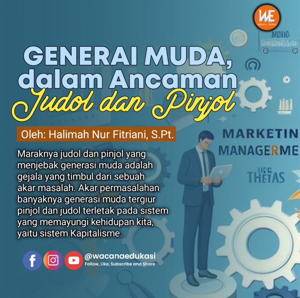 Maraknya judol dan pinjol yang menjebak generasi muda adalah gejala yang timbul dari sebuah akar masalah. Akar permasalahan banyaknya generasi muda tergiur pinjol dan judol terletak pada sistem yang memayungi kehidupan kita, yaitu sistem Kapitalisme. Sistem Kapitalisme menyebabkan adanya kesulitan ekonomi. Selain itu memunculkan kesenjangan sosial yang parah. Para generasi muda kesulitan mencari pekerjaan. Kalaupun mendapatkan pekerjaan, upah yang didapatkan begitu rendah. Hal menyebabkan judol dan pinjol banyak diminati sebagai solusi untuk menyelesaikan masalah finansial.