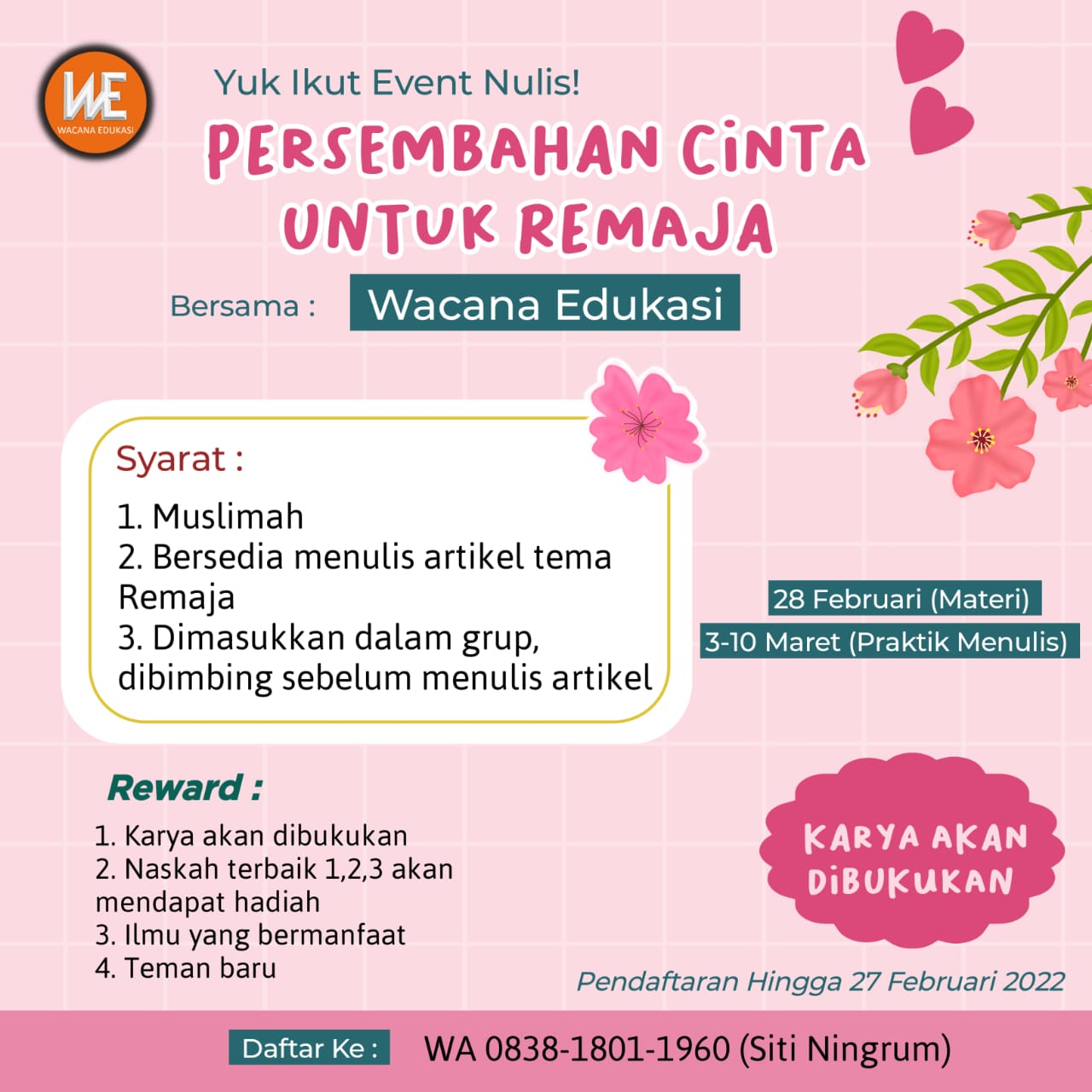 Alhamdulillah Wacana Edukasi bikin hajatan nih. Event nulis tema remaja bertajuk Persembahan Cinta untuk Remaja