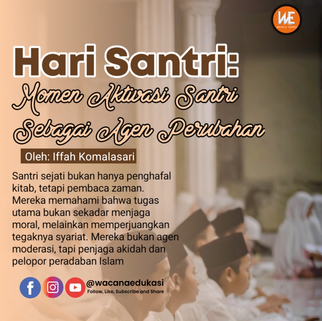 Santri sejati bukan hanya penghafal kitab, tetapi pembaca zaman. Mereka memahami bahwa tugas utama bukan sekadar menjaga moral, melainkan memperjuangkan tegaknya syariat. Mereka bukan agen moderasi, tapi penjaga akidah dan pelopor peradaban Islam.