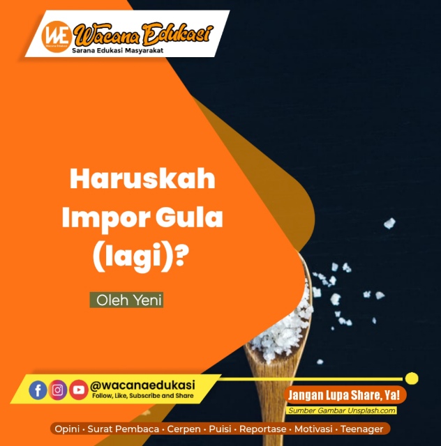 Gula impor lagi-lagi akan membanjiri pasar Indonesia. Sebagaimana data BPS sejak Tahun 2020, Indonesia mengimpor sebagian besar gula dari Thailand, Brazil, Australia dan India. Jika dalam kurun 5 tahun terakhir, kondisi konsumsi gula nasional selalu melebihi angka produksi, maka seharusnya pemerintah mencari peluang produksi tanaman tebu dan pabrik pengolahan dalam negeri lebih luas lagi, bukan malah impor gula. Di lapangan kerap ditemukan kebocoran gula rafinasi impor yang tujuannya untuk industri justru masuk di pasaran umum, ini wajar karena gula dibutuhkan hampir semua jenis usaha kuliner. Ini yang menjadi gejolak dan kekhawatiran bagi para petani karena dampak impor.