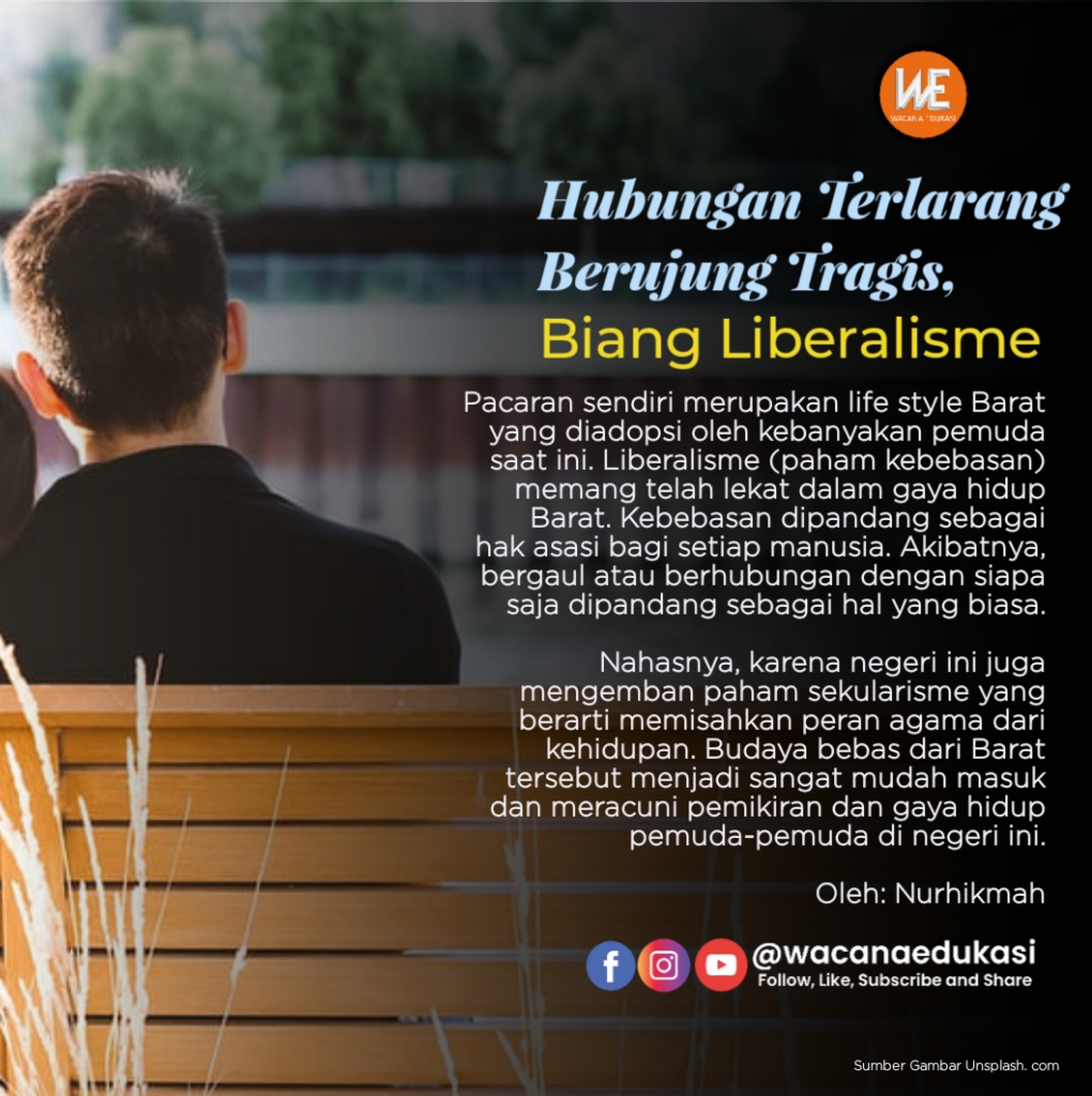 Nahasnya, karena negeri ini juga mengemban paham sekularisme yang berarti memisahkan peran agama dari kehidupan. Budaya bebas dari Barat tersebut menjadi sangat mudah masuk dan meracuni pemikiran dan gaya hidup pemuda-pemuda di negeri ini.