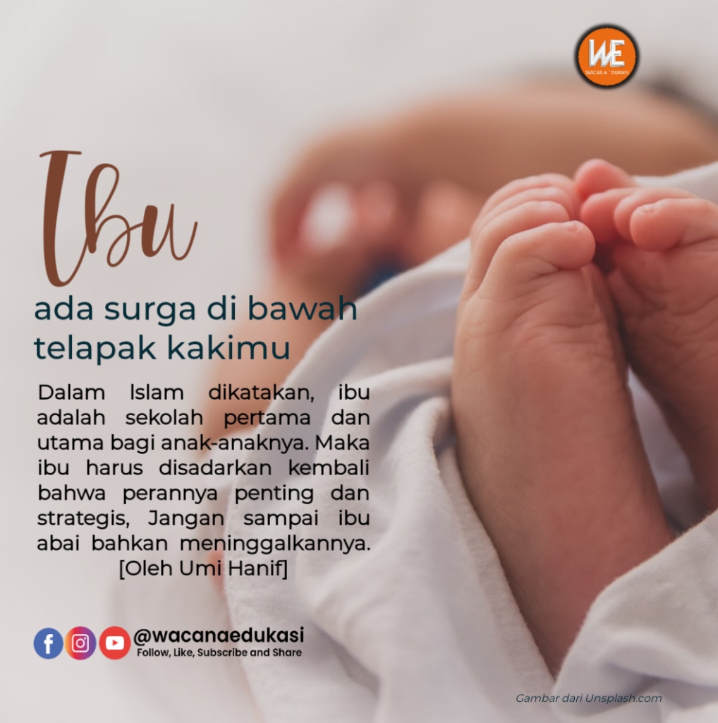 Dalam lslam dikatakan, ibu adalah sekolah pertama dan utama bagi anak-anaknya. Maka ibu harus disadarkan kembali bahwa perannya penting dan strategis, Jangan sampai ibu abai bahkan meninggalkannya.