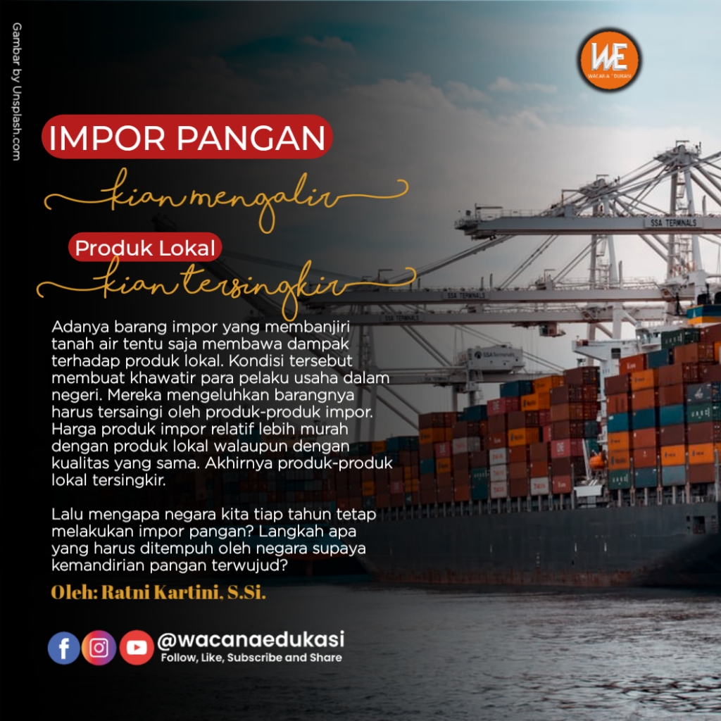 wacana-edukasi.com– Sepanjang tahun 2021, produk impor pangan membanjiri negeri ini. Tanpa bisa dicegah, pangan impor tumpah ruah. Padahal di dalam negeri, panen raya beberapa produk sedang dinanti. Namun sayangnya pembuat kebijakan tidak mau peduli. Seolah-olah menutup mata dari kondisi stok pangan yang masih ada.