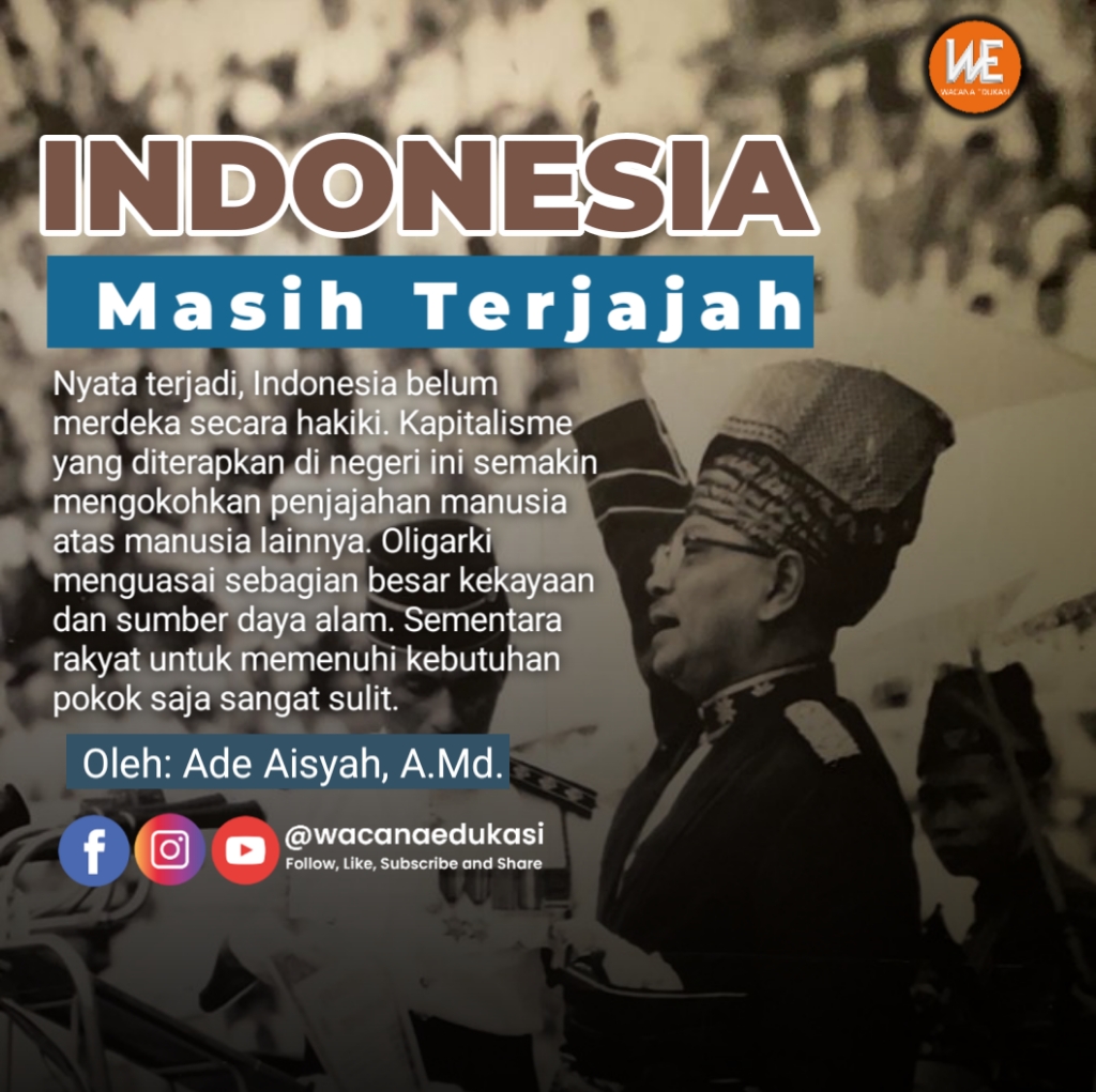 Nyata terjadi, Indonesia belum merdeka secara hakiki. Kapitalisme yang diterapkan di negeri ini semakin mengokohkan penjajahan manusia atas manusia lainnya. Oligarki menguasai sebagian besar kekayaan dan sumber daya alam. Sementara rakyat untuk memenuhi kebutuhan pokok saja sangat sulit.