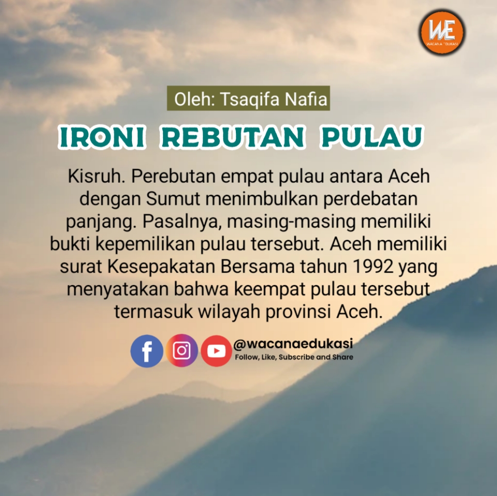 Wacana-edukasi.com, SURAT PEMBACA-– Akhir keputusan dari Menteri dalam negeri (mendagri), Tito Karnavian. Melalui kepmendagri yang diterbitkan pada 25 April 2025 yang secara resmi menetapkan keempat pulau kecil di Samudera Hindi aitu sebagai bagian dari wilayah privinsi Sumatera Utara. Di tengah-tengah keputusan mendagri tersebut mencuat berbagai spekulasi bahwa penetapan wilayah ini berkaitan dengan potensi sumber daya alam. Khususnya minyak dan gas di sekitar empat pulau tersebut (Tempo.co,Jakarta, 13/06/2025).