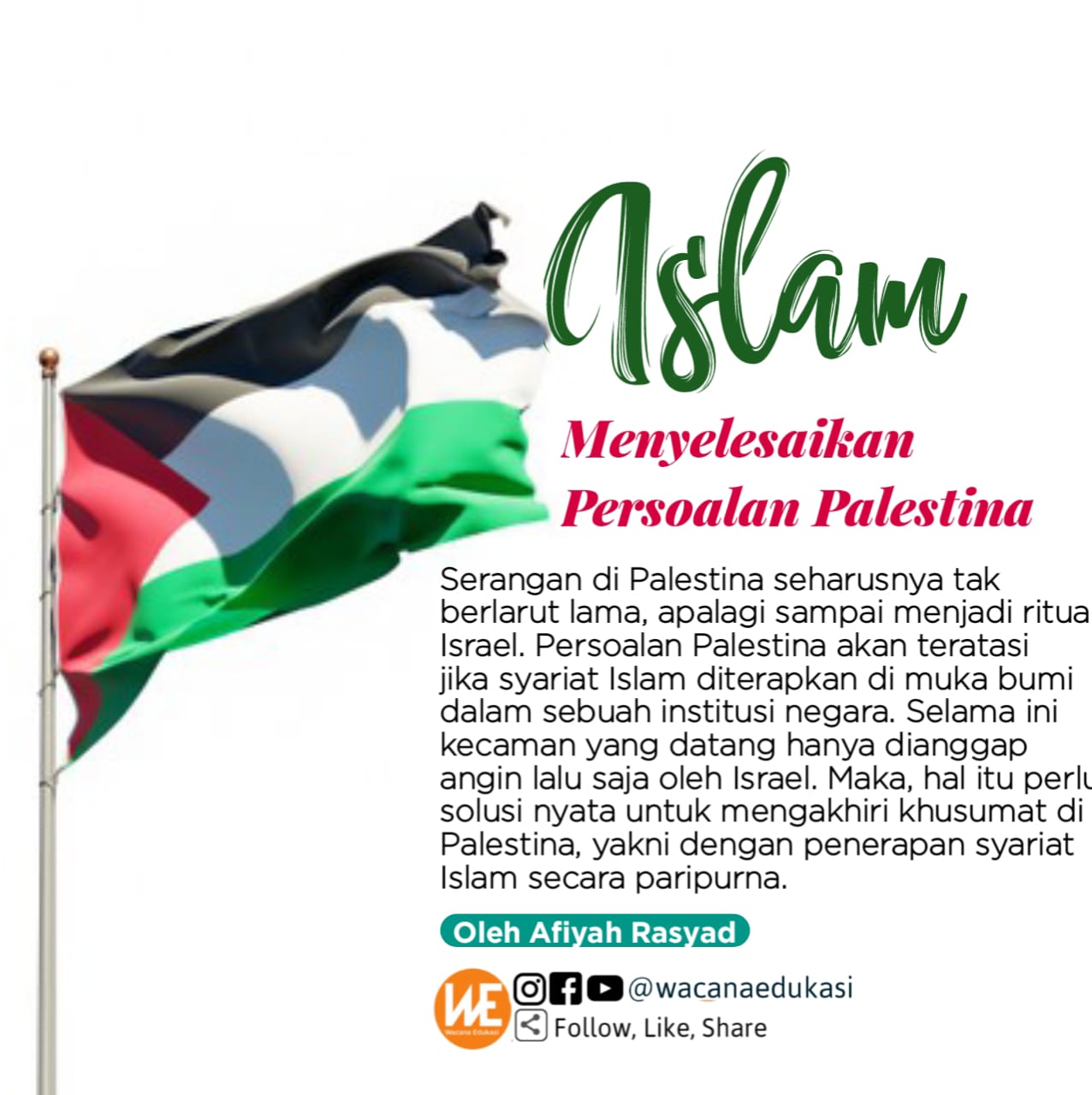 Serangan di Palestina seharusnya tak berlarut lama, apalagi sampai menjadi ritual Israel. Persoalan Palestina akan teratasi jika syariat Islam diterapkan di muka bumi dalam sebuah institusi negara. Selama ini kecaman yang datang hanya dianggap angin lalu saja oleh Israel. Maka, hal itu perlu solusi nyata untuk mengakhiri khusumat di Palestina, yakni dengan penerapan syariat Islam secara paripurna.
