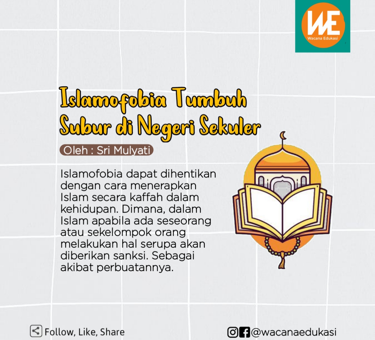 Wacana Edukasi adalah sarana edukasi masyarakat. Silakan kirimkan tulisan anda ke media kami. Wacana Edukasi akan melakukan seleksi dan menayangkan berbagai naskah dari Anda. Tulisan yang dikirim bisa berupa Opini, SP, Puisi, Cerpen, Sejarah Islam, Tsaqofah Islam, Fiqih, Story Telling, Olah raga, Kesehatan, Makanan, ataupun tulisan lainnya. Tulisan tidak boleh berisi hoaks, mengandung SARA, ujaran kebencian, dan bertentangan dengan syariat Islam. Tulisan yang dikirim sepenuhnya menjadi tanggungjawab penulis.