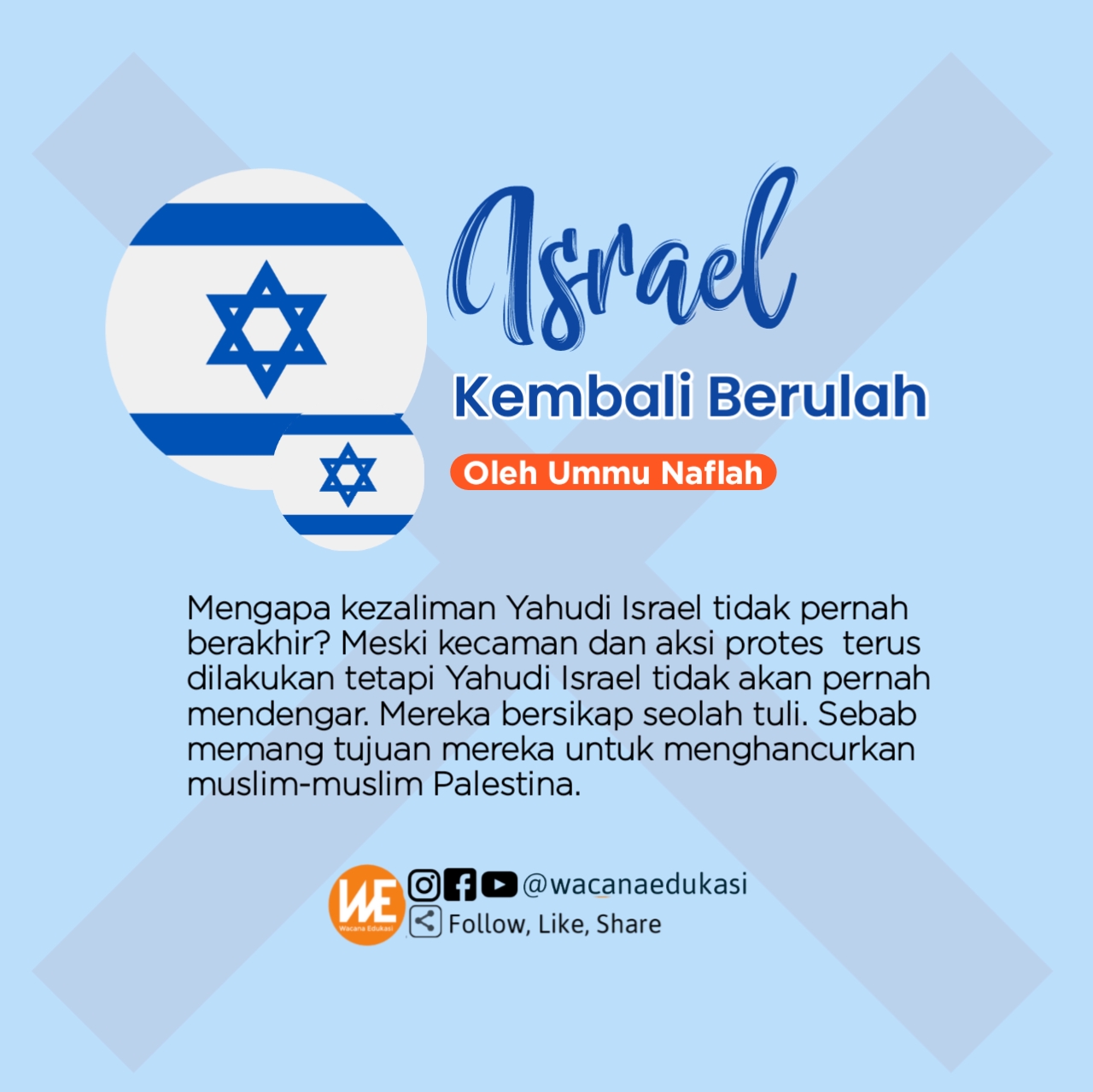 Mengapa kezaliman Yahudi Israel tidak pernah berakhir? Meski kecaman dan aksi protes terus dilakukan tetapi Yahudi Israel tidak akan pernah mendengar. Mereka bersikap seolah tuli. Sebab memang tujuan mereka untuk menghancurkan muslim-muslim Palestina.