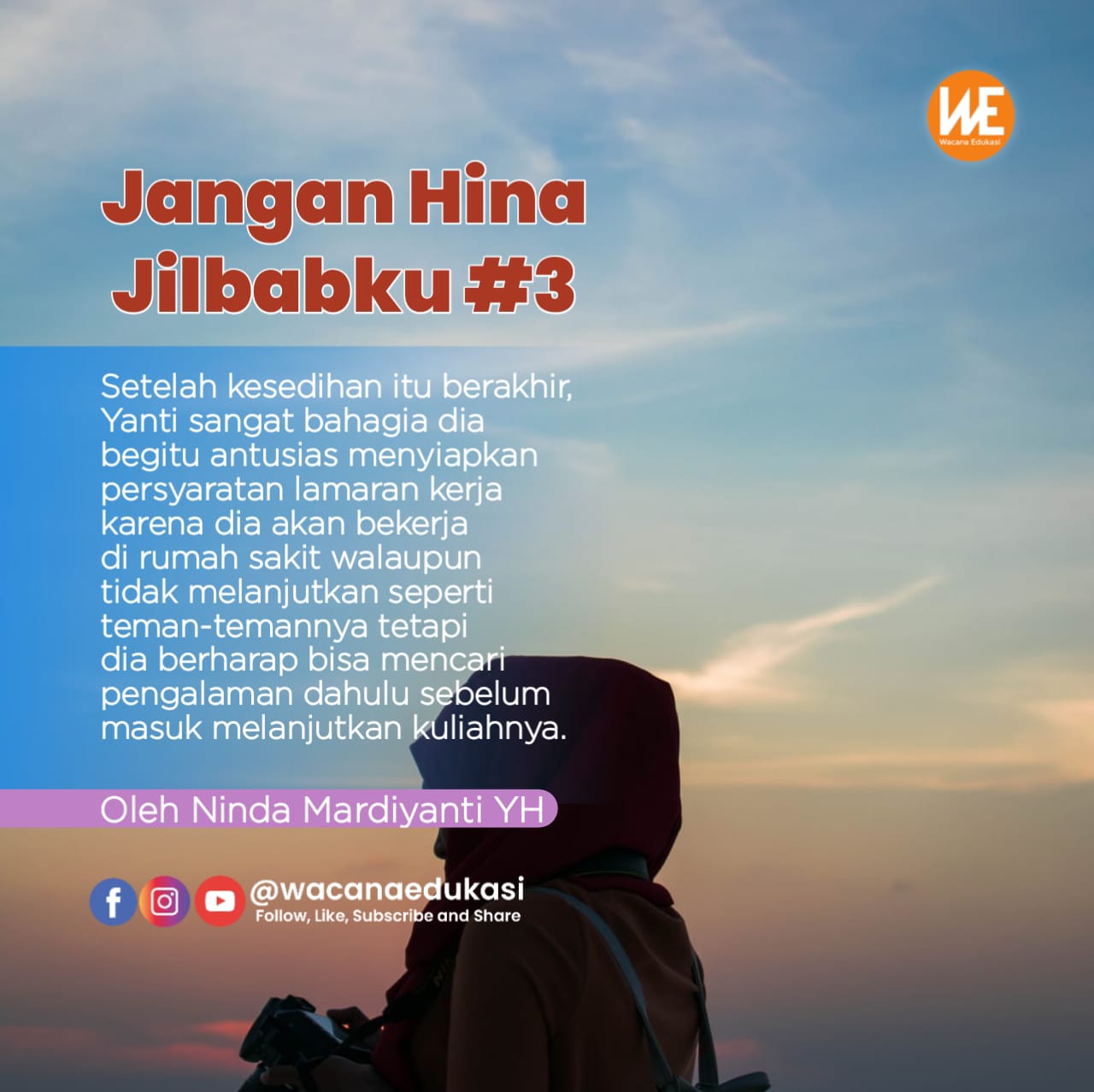 Wacana-edukasi.com Hidup memang penuh dengan ujian, tidak ada satu pun yang tidak pernah diuji dengan berbagai masalah. Banyak orang yang mengatakan bahwa ketika berhijrah maka siapkanlah mental, sebab setelahnya akan ada duri tajam menggoreskan luka dalam jiwa. Hal itu pun dirasakan oleh Yanti betapa sakit dan sedih hatinya, tetapi Yanti selalu menguatkan dirinya dengan motivasi yang diberikan Kak Nur salah satunya kalimat ‘sulit tapi bisa’. Sebuah penegasan bahwa kita harus optimis walaupun sangat sulit, tetapi dengan kekuatan doa bahwa Allah yang akan memudahkan segala urusan hamba-Nya.