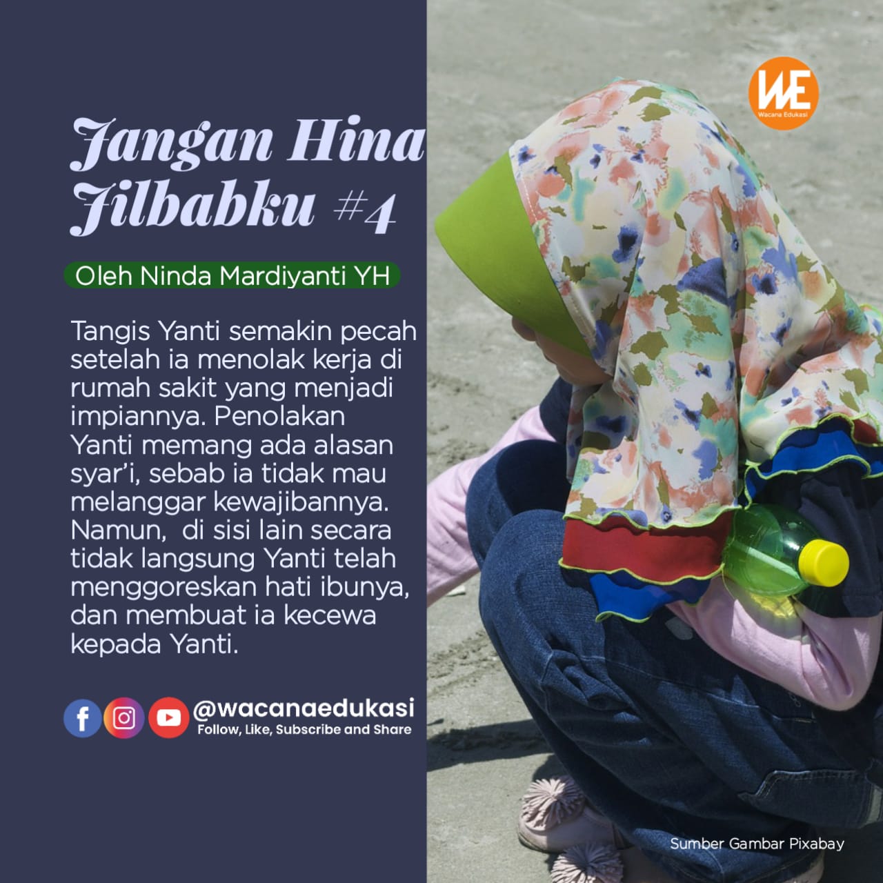 Wacana-edukasi.comTangis Yanti semakin pecah setelah ia menolak kerja di rumah sakit yang menjadi impiannya. Penolakan Yanti memang ada alasan syar’i, sebab ia tidak mau melanggar kewajibannya. Namun, di sisi lain secara tidak langsung Yanti telah menggoreskan hati ibunya, dan membuat ia kecewa kepada Yanti.