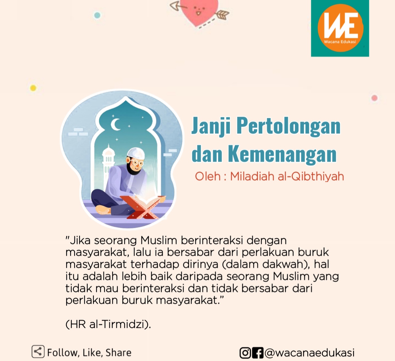 “Jika seorang Muslim berinteraksi dengan masyarakat, lalu ia bersabar dari perlakuan buruk masyarakat terhadap dirinya (dalam dakwah), hal itu adalah lebih baik daripada seorang Muslim yang tidak mau berinteraksi dan tidak bersabar dari perlakuan buruk masyarakat.” (HR al-Tirmidzi).