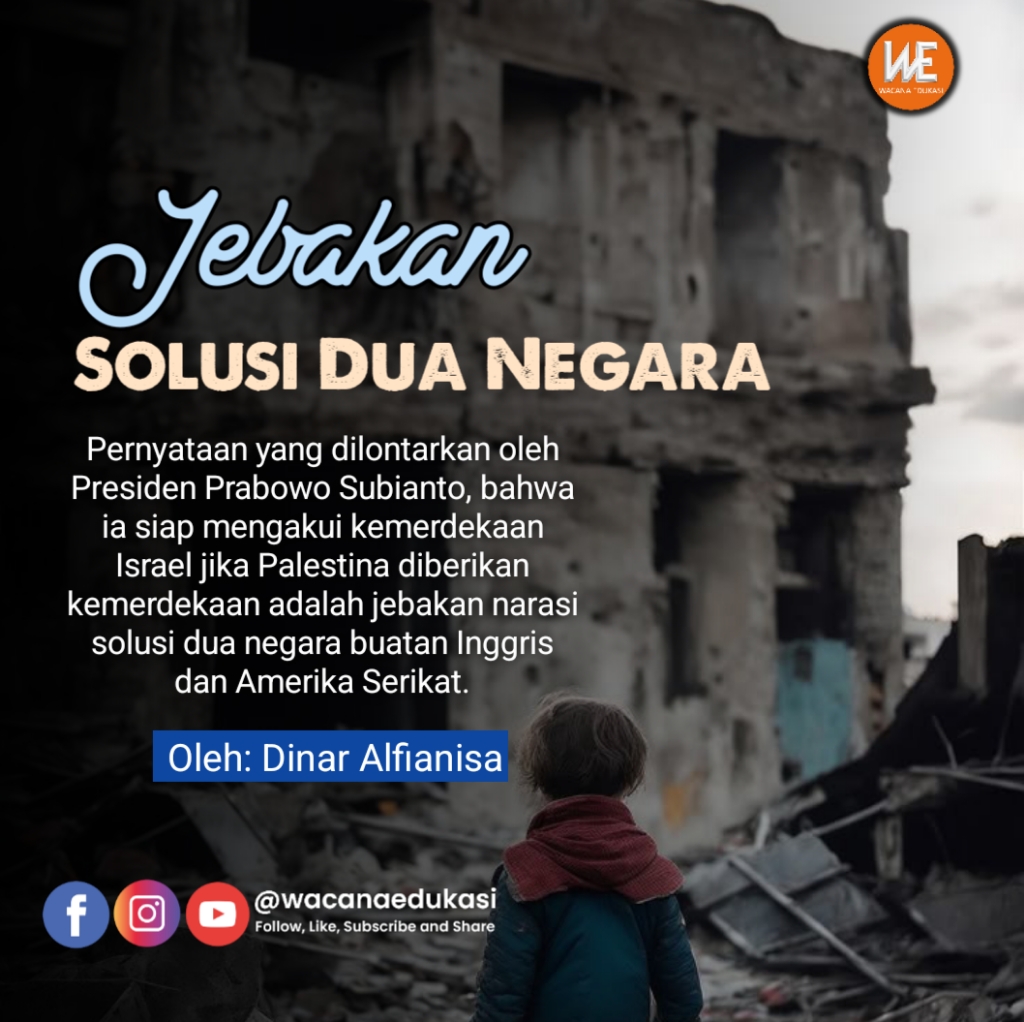 Pernyataan yang dilontarkan oleh Presiden Prabowo Subianto, bahwa ia siap mengakui kemerdekaan Israel jika Palestina diberikan kemerdekaan adalah jebakan narasi solusi dua negara buatan Inggris dan Amerika Serikat. Pernyataan tersebut adalah bentuk pengkhianatan terhadap perjuangan rakyat Gaza sekaligus pengkhianatan terhadap perjuangan para penakluk Baitul Maqdis sejak masa Umar bin Khattab dan Salahuddin Al-Ayyubi. Bahkan juga mengkhianati perjuangan rakyat Palestina yang bertahan dengan keimanannya untuk menjaga Masjidil Aqsa.