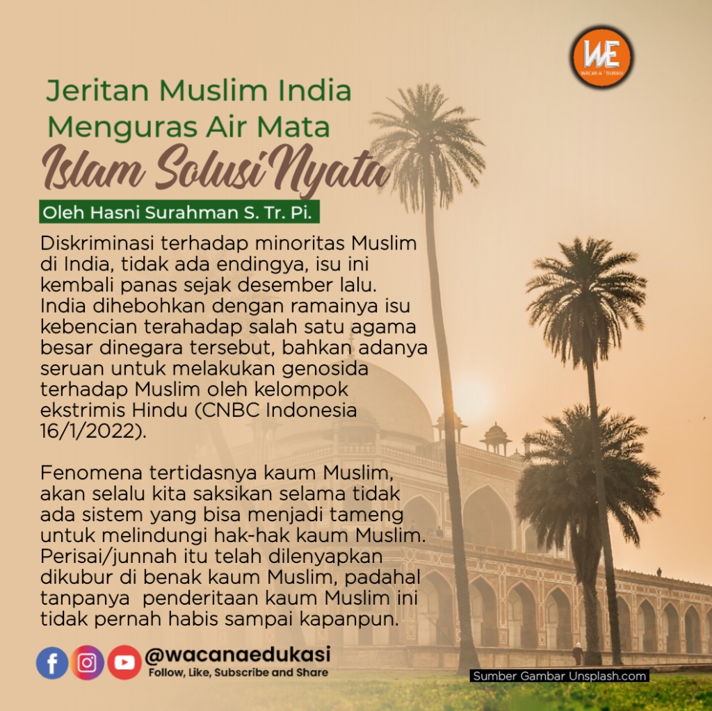 Diamnya pemerintahan maupun aparat kepolisian India seakan mengiyakan seruan genosida terhadap minoritas Muslim di negeri tersebut, sentimen agama mengalahkan rasa kemanusian. Sistem Demokrasi melahirkan pemimpin sekuler seperti Narendra Modi, pemimpin yang masa bodoh terhadap nasib warga negaranya, pemimpin yang pro kepada kelompok- kelompok pemecah belah guna mengokohkan tumpuk kekuasaan. Kaum Muslim diberbagai belahan dunia bagaikan potongan-potongan kue yang seenaknya dibagi-bagi ke mulut para penguasa zalim, mereka senantiasa mendiskreditkan Muslim. Penjajahan, genosida, pembunuhan, perampasan hak kaum Muslim terjadi di negeri-negeri Muslim bagaikan film yang dapat disaksikan kapan saja.
