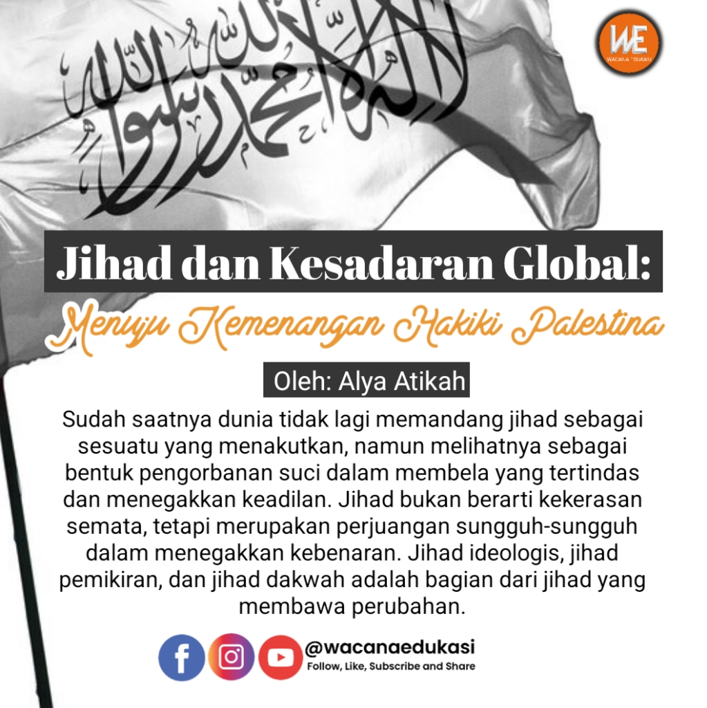 Sudah saatnya dunia tidak lagi memandang jihad sebagai sesuatu yang menakutkan, namun melihatnya sebagai bentuk pengorbanan suci dalam membela yang tertindas dan menegakkan keadilan. Jihad bukan berarti kekerasan semata, tetapi merupakan perjuangan sungguh-sungguh dalam menegakkan kebenaran. Jihad ideologis, jihad pemikiran, dan jihad dakwah adalah bagian dari jihad yang membawa perubahan.