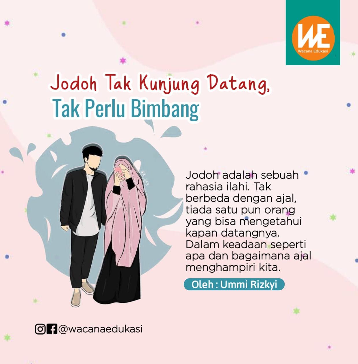 Wacana-edukasi.com — Jodoh adalah sebuah rahasia ilahi. Tak berbeda dengan ajal, tiada satu pun orang yang bisa mengetahui kapan datangnya. Dalam keadaan seperti apa dan bagaimana ajal menghampiri kita. Begitupun jodoh, datang ketika muda ataukah datang ketika kita sudah berusia lanjut.