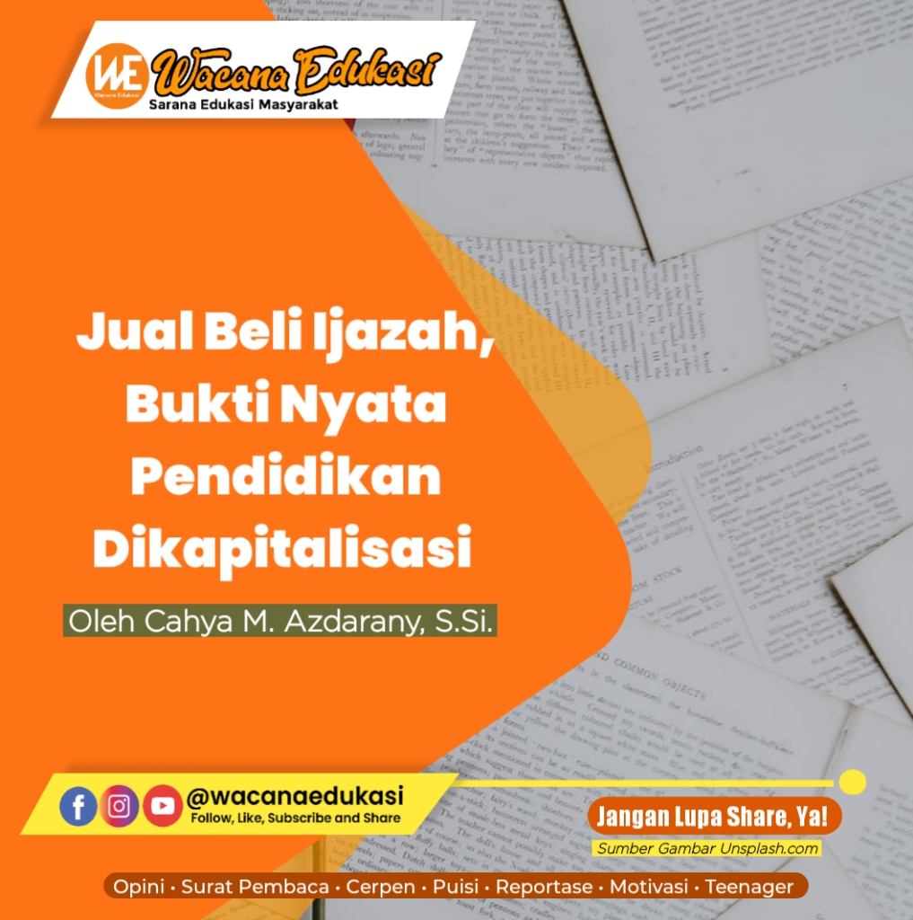 Kasus pencabutan izin operasional perguruan tinggi ini menunjukkan bahwa praktik-praktik curang seperti jual beli ijazah telah biasa dilakukan, bahkan bisa saja ada banyak perguruan tinggi lain yang melakukannya namun belum ketahuan. Seperti inilah wajah pendidikan kita hari ini yang ditunggangi kapitalisme. Pendidikanpun dikapitalisasi. Ijazah yang seharusnya menjadi bukti tertulis bahwa seseorang telah menyelesaikan pendidikan tertentu, malah diperjualbelikan. Ada konsep bisnis di dalamnya, yaitu adanya permintaan dan penawaran. Ada permintaan dari mahasiswa yang hanya ingin mendapatkan ijazah tanpa proses perkuliahan yang sesungguhnya. Di sisi lain, ada pula penawaran dari perguruan tinggi yang ingin mendapatkan keuntungan tanpa peduli apakah mahasiswa tersebut menjalani proses perkuliahan atau tidak. Hal ini menyebabkan jual beli ijazah menjadi sesuatu yang biasa terjadi di tengah masyarakat saat ini.